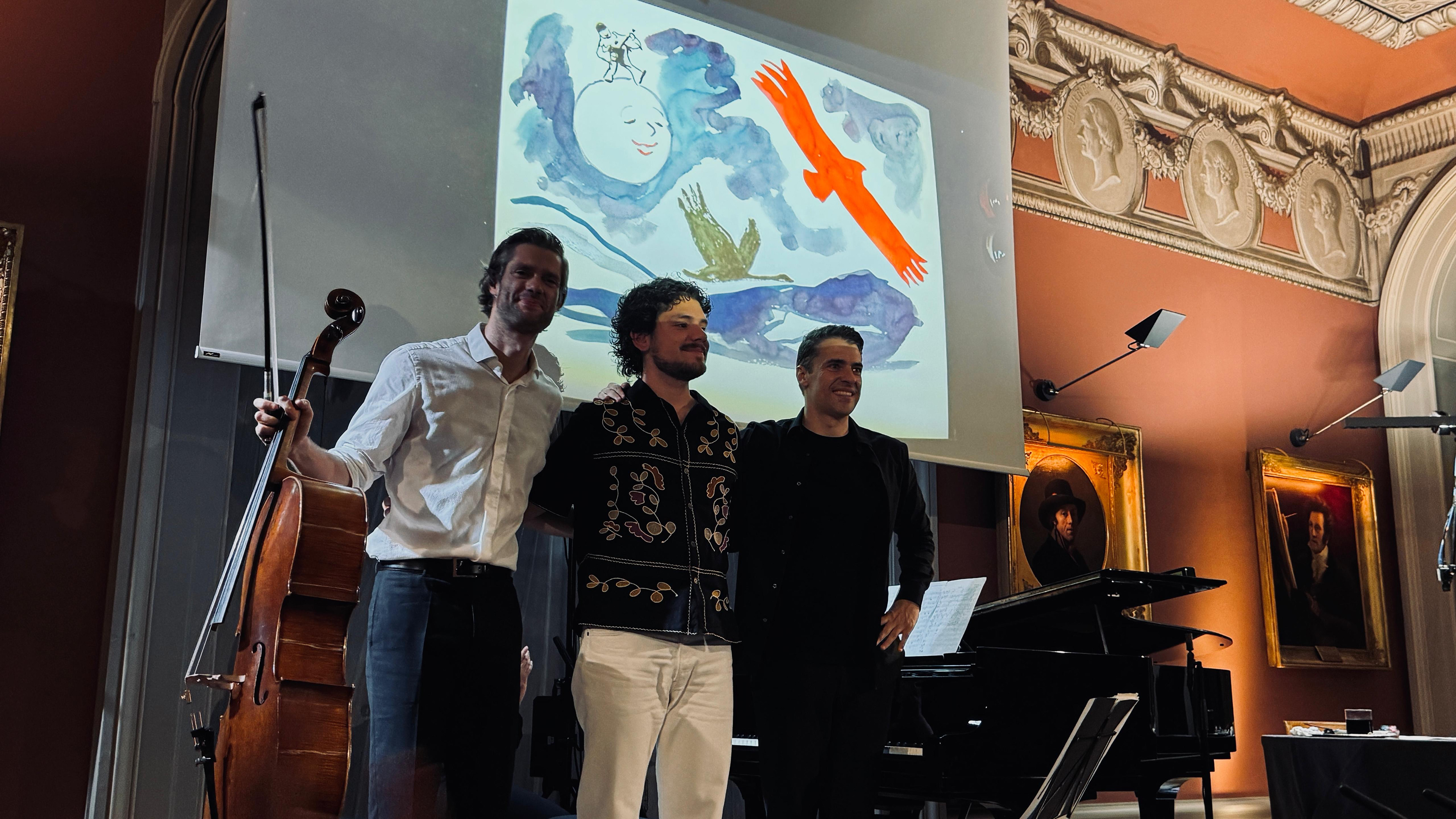 Concerts dessinés à la Société des Arts de Genève avec le violoniste Lionel Cottet et le pianiste Jorge Viladoms. Genève, Mai 2025