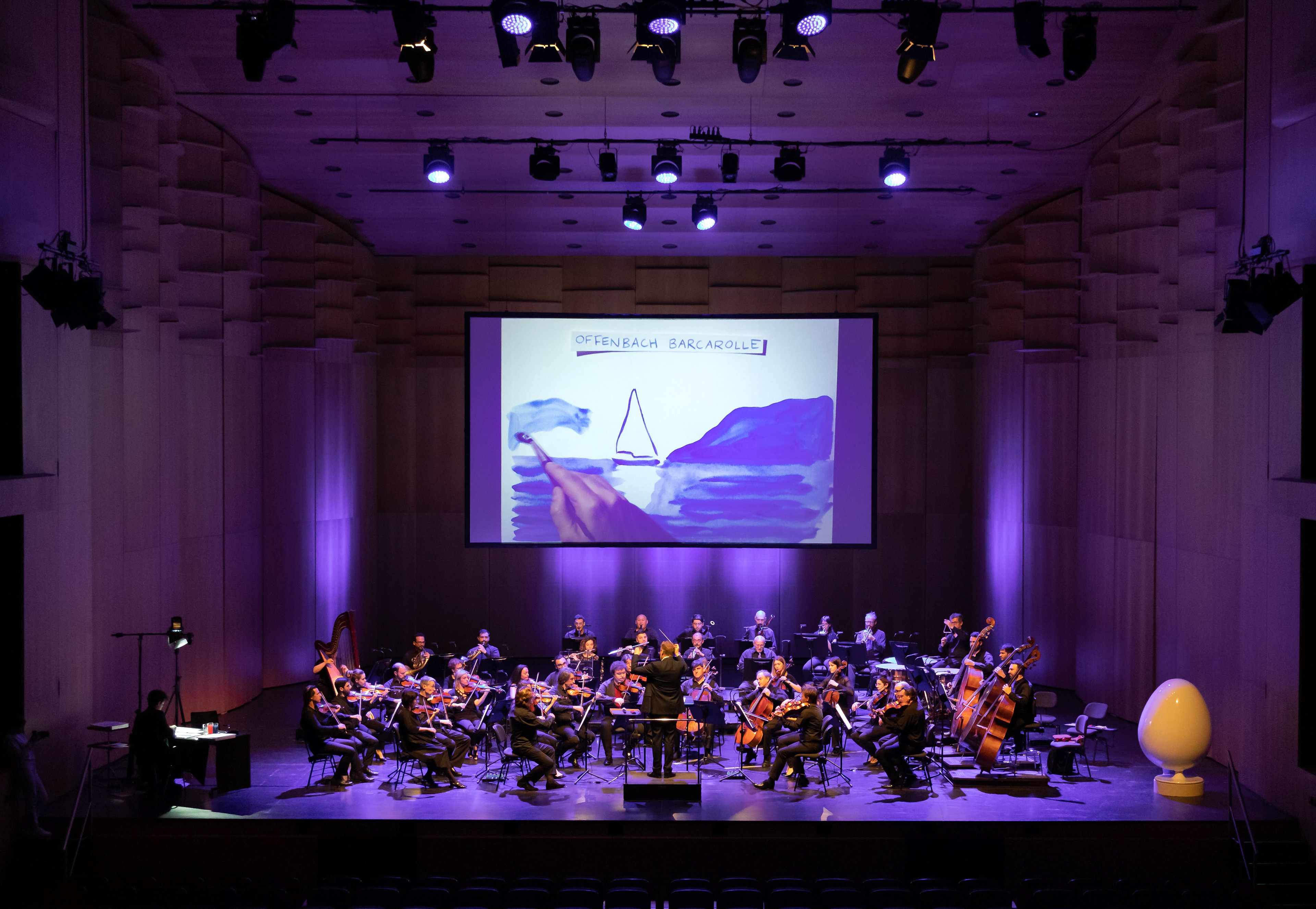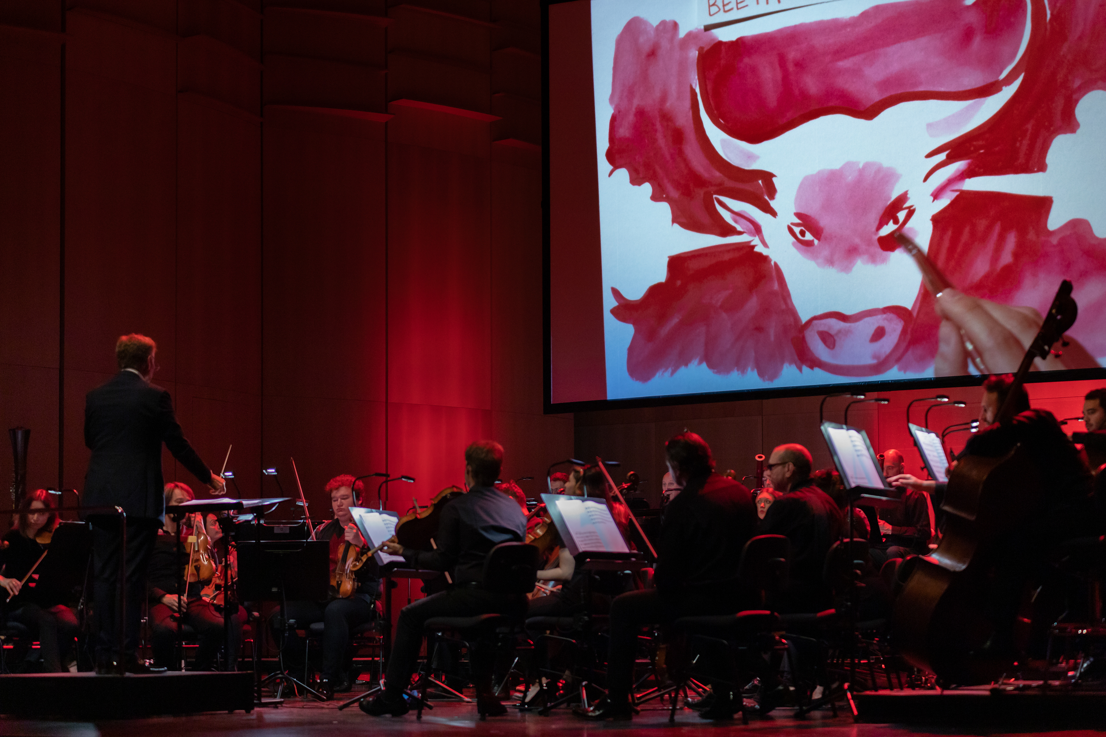 Concerts dessinés pour les écoles avec l'OSI (Orchestre suisse italien) au LAC (Lugano Arte e Cultura), le chef d'orchestre Philippe Béran ainsi que la présentatrice Carla Norghauer. Photos ©LAC Lugano Arte e Cultura 2023, Suisse.