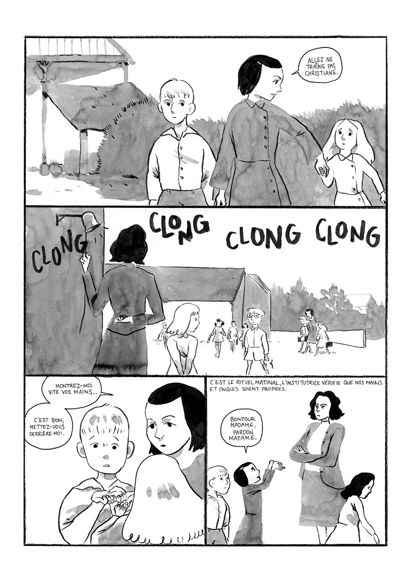 Elise lives with her family in a house next to the railway tracks. When she's not at school, she helps her mother around the house or goes for walks with her dog, Dicko. At a time when teachers were allowed to wield rulers on their pupils' fingers, pupils were sometimes the victims of abuse.